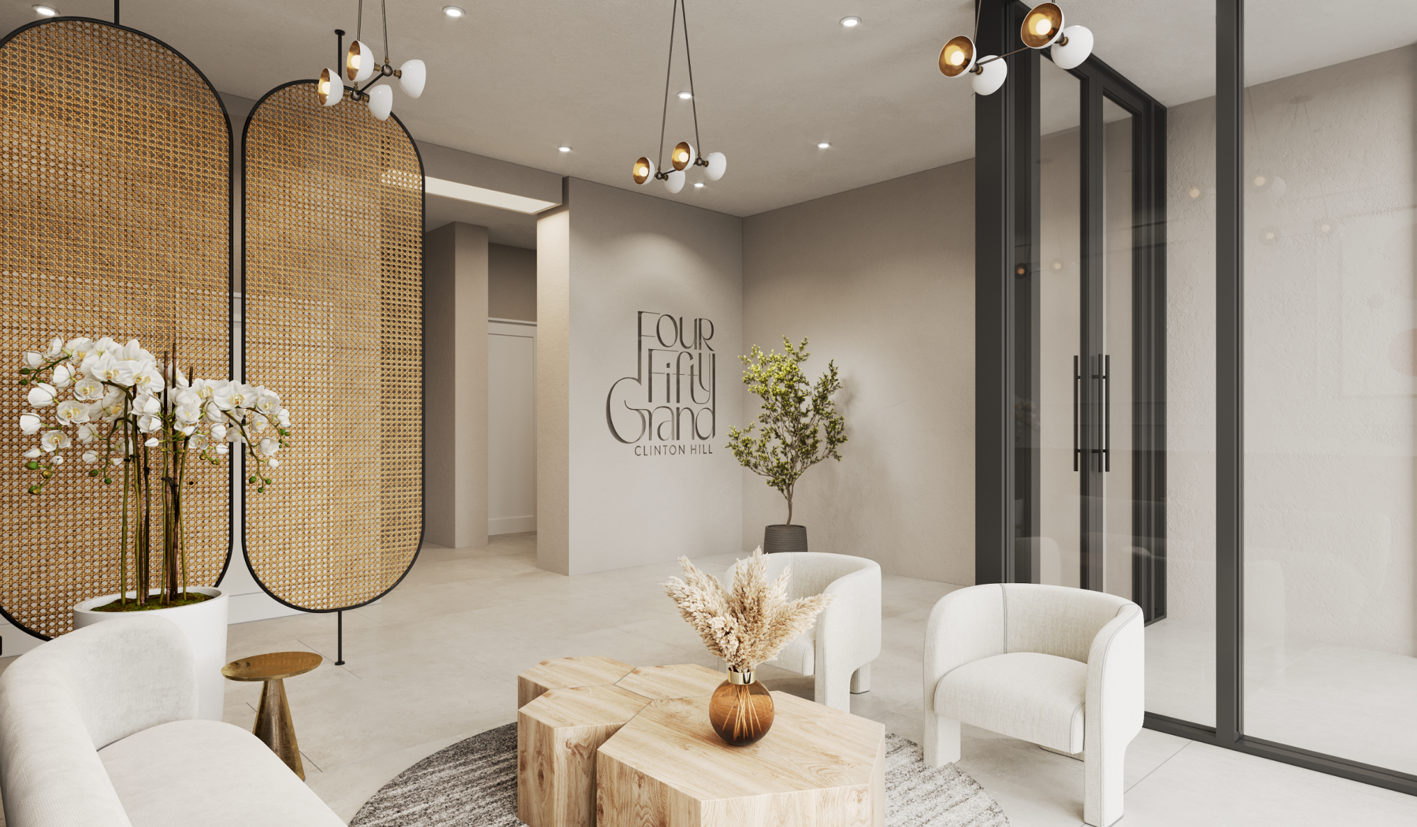 Placed among the brownstones of Clinton Hill, Four Fifty Grand is influenced by tree-lined streets and substantial historic architecture. Its elegant brick facade rises to a glass crown, creating seven stories of intimately situated floors—superb for providing a neighborhood-like feel within.